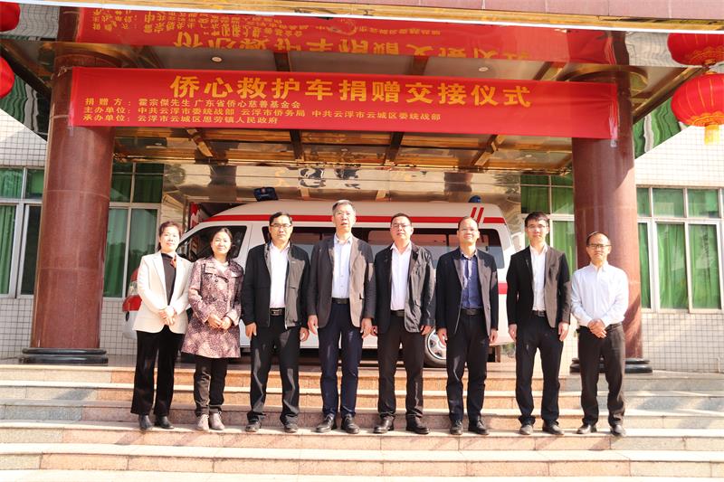 云浮市委統(tǒng)戰(zhàn)部在云浮市云城區(qū)思勞鎮(zhèn)人民政府舉行了救護(hù)車捐贈(zèng)交接儀式