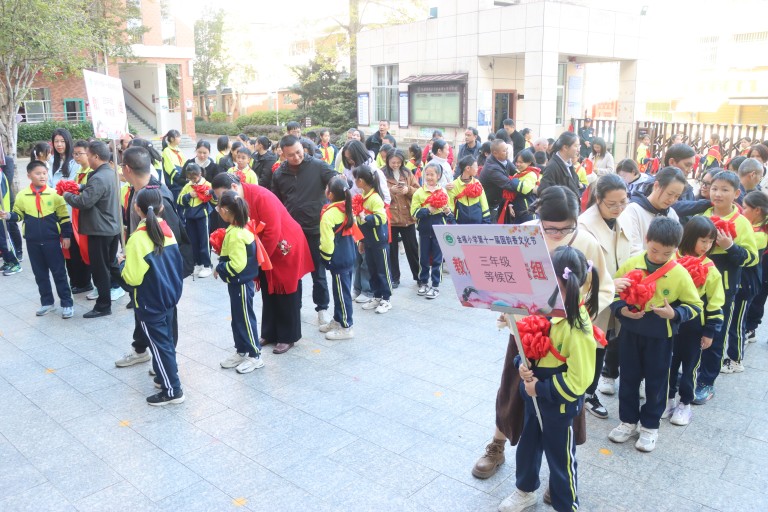 現(xiàn)場(chǎng),獲獎(jiǎng)學(xué)子按年級(jí)列隊(duì),滿臉喜悅。家長(zhǎng)親手為孩子佩戴榮譽(yù)紅花,既嘉許學(xué)子努力,也飽含家庭關(guān)愛(ài),為儀式注入真摯暖意。