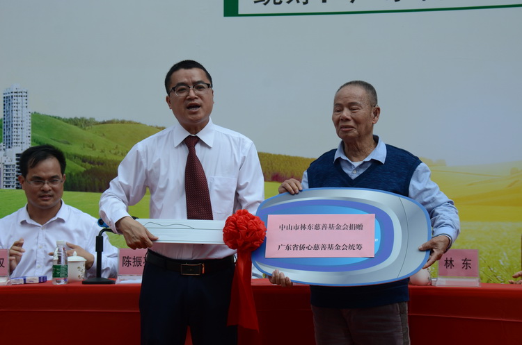 2016年,茂名信宜遭特大暴雨襲擊造成山洪暴發(fā),受損嚴重,很多房屋因此而沖毀,林東先生的慈善團隊慷慨捐資20.6萬元幫助受災(zāi)戶重建家園,建成23戶“僑心居”。在參加“僑心救護車”捐贈儀式期間,林東先生一行回訪了部分“僑心居”受助戶。