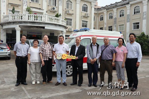 9月8日上午,我會向汕尾市海豐縣黃羌鎮(zhèn)衛(wèi)生院捐贈救護車儀式在珠海舉行?;糇诮芟壬?、曾富城先生等愛心人士、廣東省僑辦僑政處調研員黃林炎、廣東省僑心慈善基金會理事長楊昀、海豐縣黃羌鎮(zhèn)衛(wèi)生院院長邱偉楊等參加了捐贈儀式。